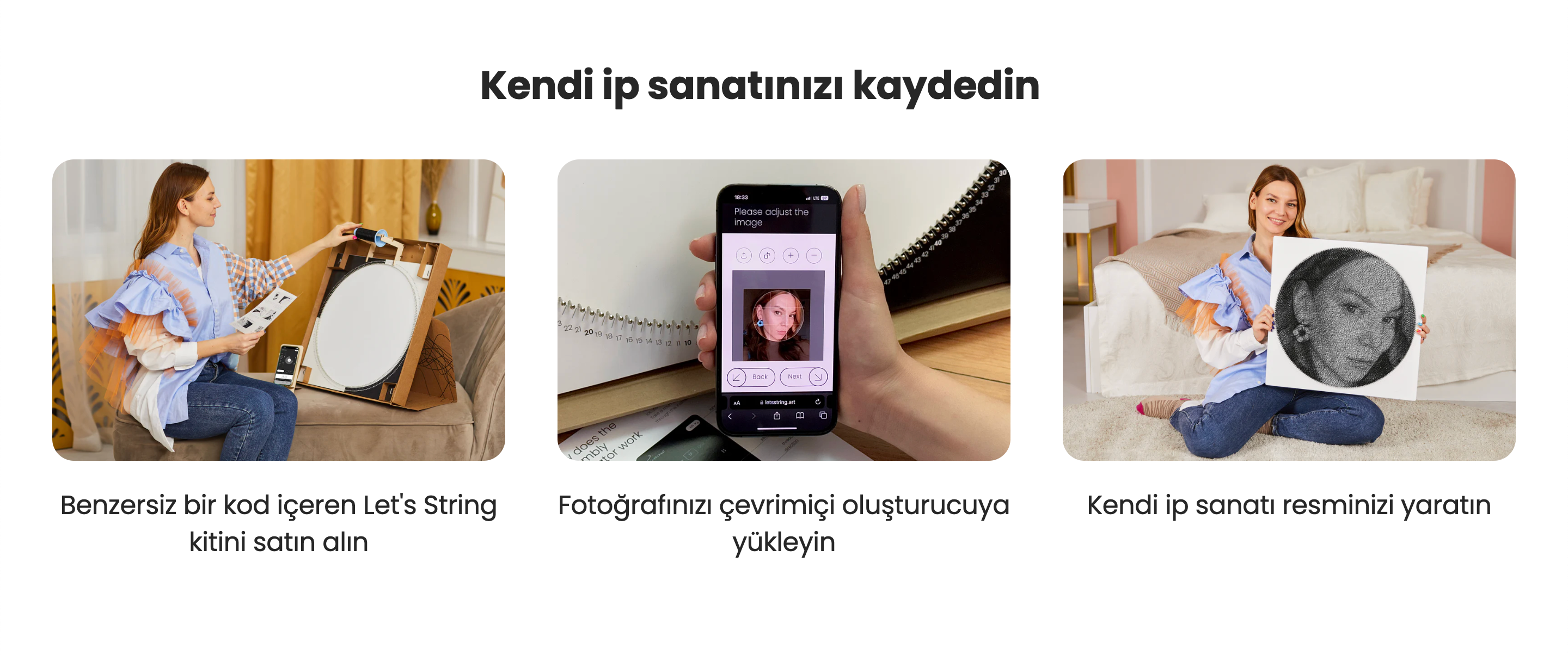 Herhangi bir resmi veya fotoğrafı göz alıcı bir ip resmine dönüştürmenizi sağlayan benzersiz bir yaratıcılık kitidir. Kolay anlaşılır talimatlar ve kullanışlı sesli asistanla yaratıcılığınızı ortaya çıkarabilir ve muhteşem sanat eserleri yaratabilirsiniz.